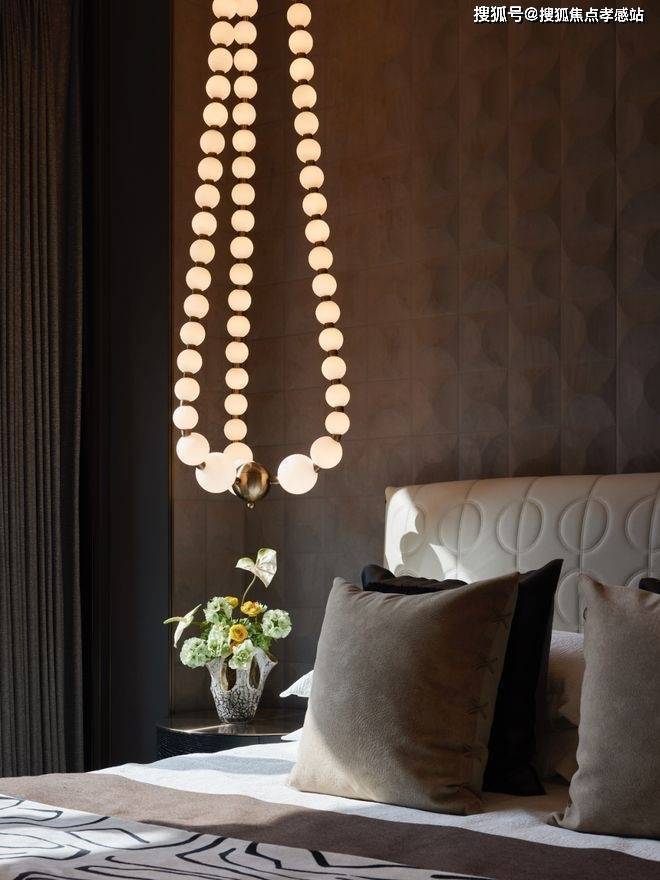 皮革打造柔和的品质感,穿插的金属线条打破常规,进一步奠定奢华基调。而一幅奢华装饰画悬挂其中,强化了空间的艺术体会。