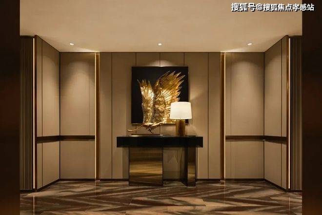 这份体验从电梯厅开始,地面采用奢石拼花,虚实结合的造景将归家仪式感发挥到极致。
