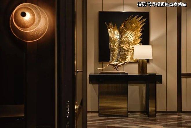人的内心经由线性与秩序得到转化性的叙述,入口处金属秩序感的家具与挂画相得益彰,古北中央公园壹号公馆以家为画,展示对城市生活的独特感悟。