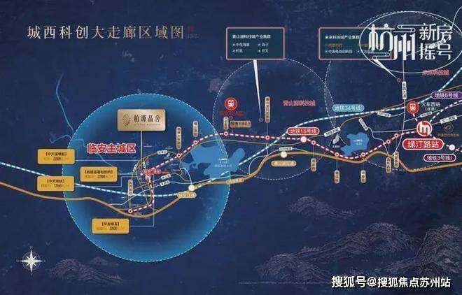 一高:杭瑞高速;两铁:16号线及杭临绩高铁;三快速:留祥路西延、科技大道改扩建及329国道南移。项目踞地铁16号线临安广场站约500米。