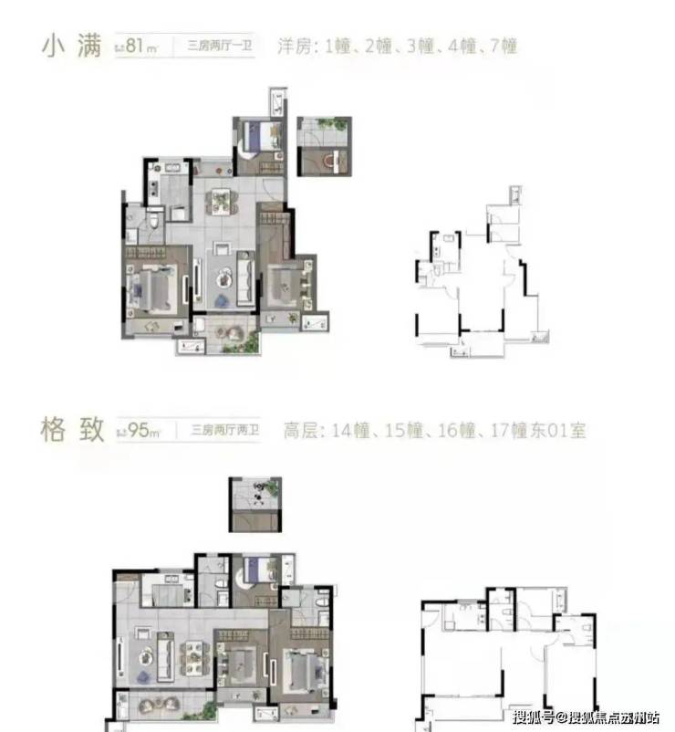 金地湖城风华无论高层还是洋房,都是清一色的小户型,主力建筑面积约81-97㎡。所有户型都有南北双阳台,由于项目毛坯交付,业主入住后可以充分使用这一空间,加上套内多飘窗设计,得房率并不低。