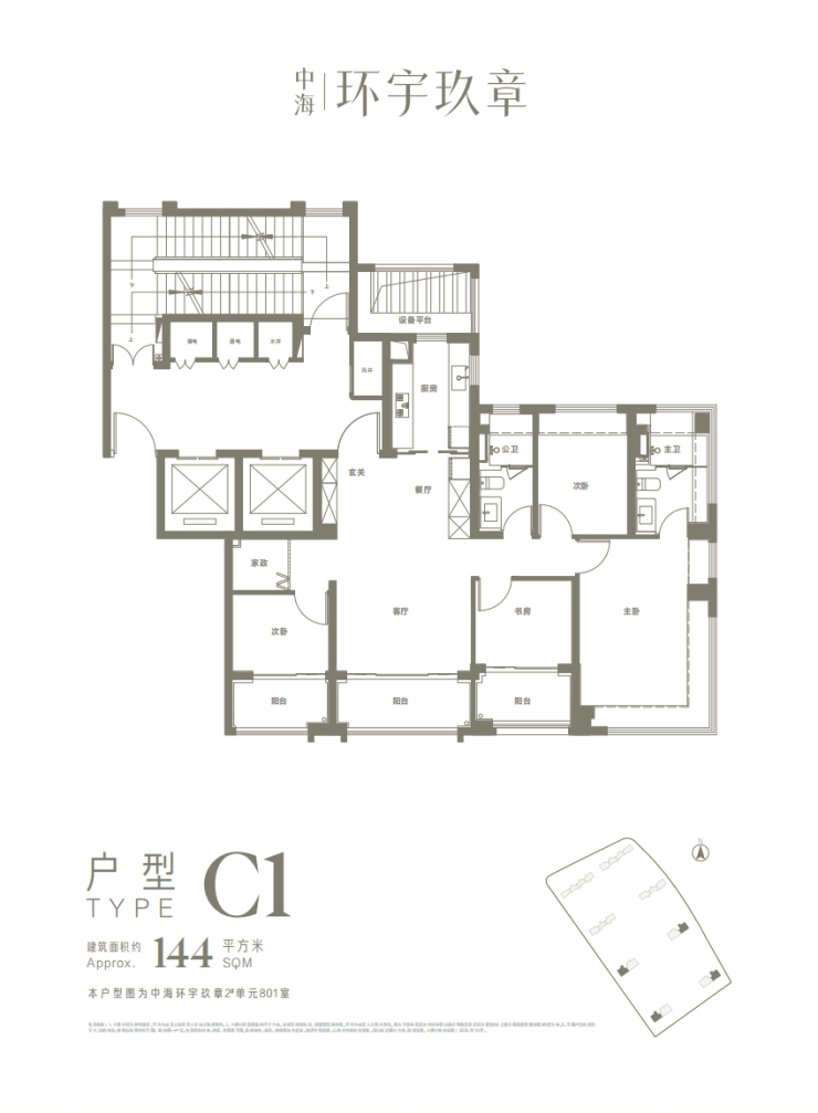 建面约140㎡户型: