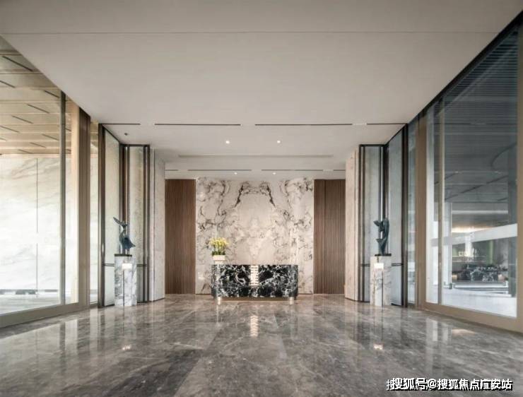 映入眼帘的有充满质感的蓝珍珠石材、玉石玻璃景墙、和宛如镜面的水景等,强大的产品力扑面而来,最新实景图先睹为快!