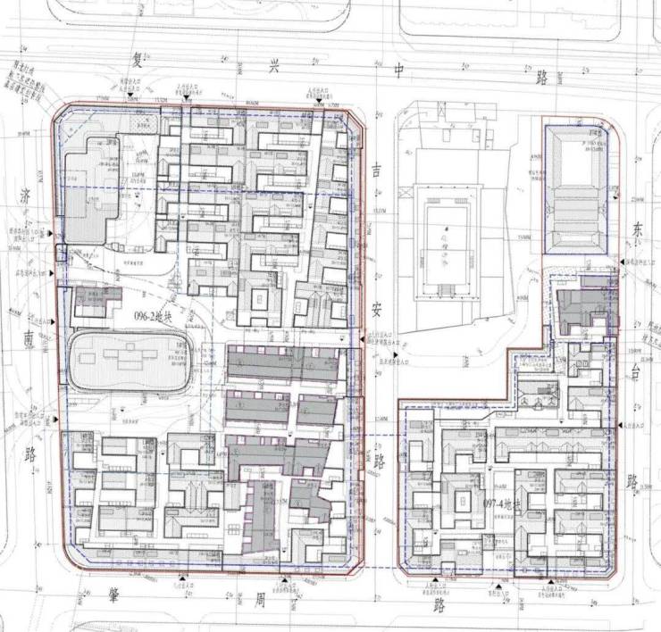 097-4地块,为住宅、供应设施、社区级公共设施混合用地,容积率为1.35,保留了西北侧的法藏讲寺,预计带来限高16米的风貌别墅;供应设施比例不小于14%、社区级公共设施比例不小于10%、住宅比例不大于76%。