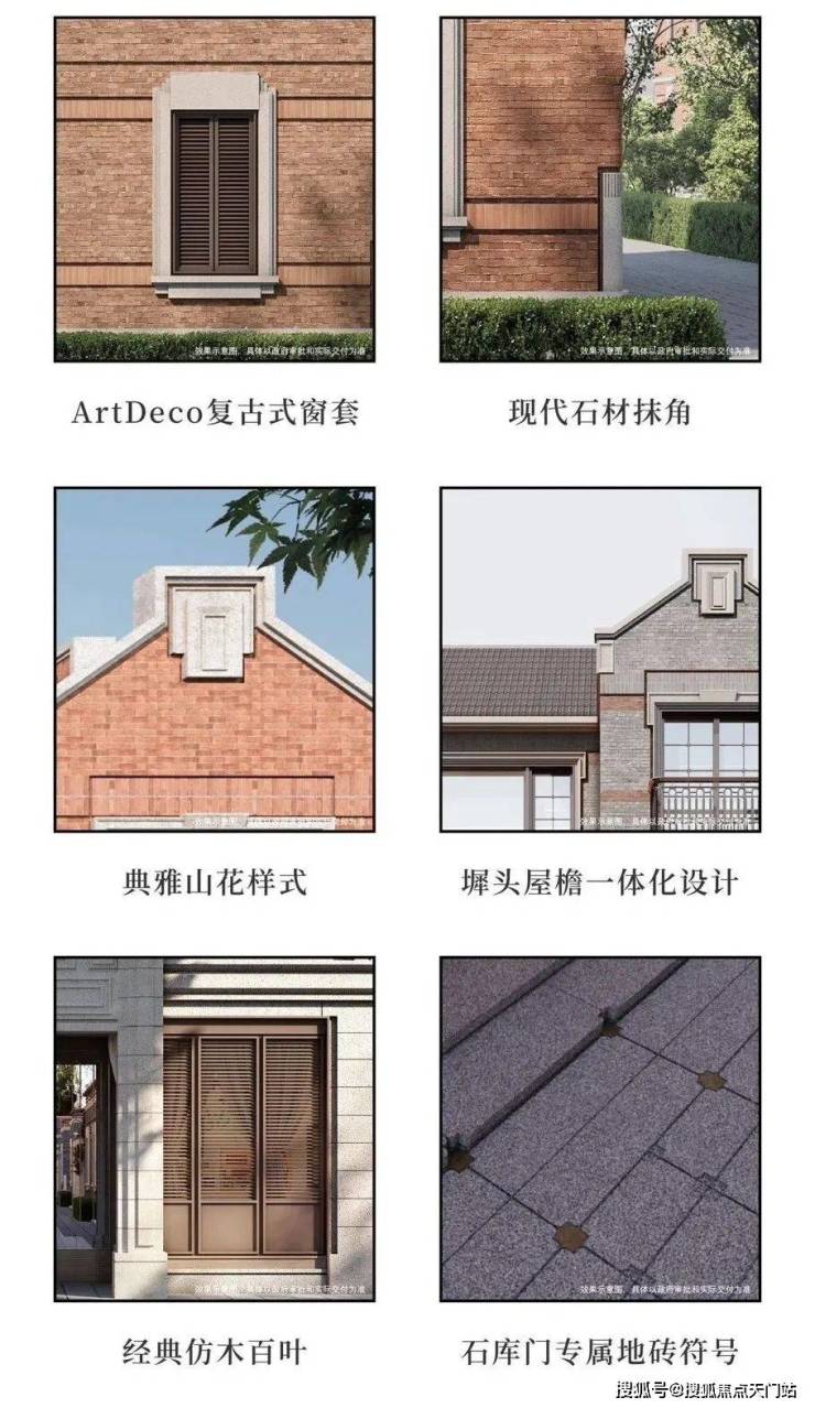 深入看细节,你会发现项目高颜值的6大新复古元素.包括Artdeco复古式窗套、现代石材抹角、典雅山花样式、墀头屋檐一体化设计、经典仿木百叶、石库门专属地砖符号等,用先锋表达回应在地文化.