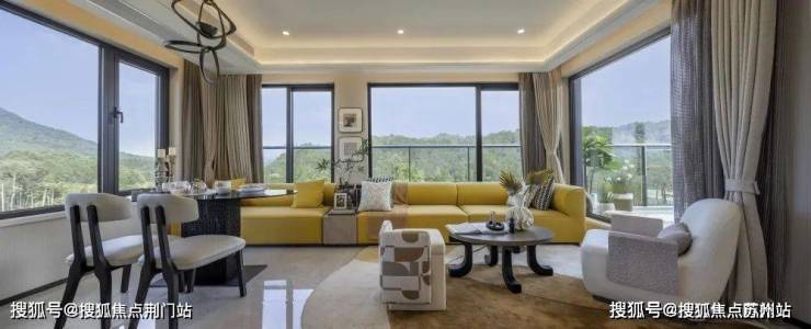 三开间朝南,最大范围把单面尺度拉宽,采光通风视野更具尺度感,打开窗帘后整个自然山景就能引景入户。