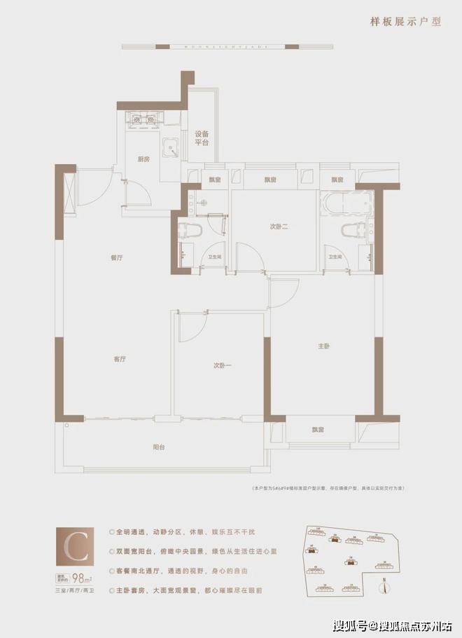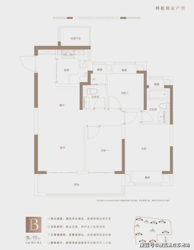 一:户型介绍:户型也多为三开间朝南,98㎡和118㎡还整体采用了南向双阳台设计,房间通透明亮,利用率高。再加上阳台L型窗设计、同层排水设计每一处细节都经过了认真考量,带来幸福满满的居住体验!