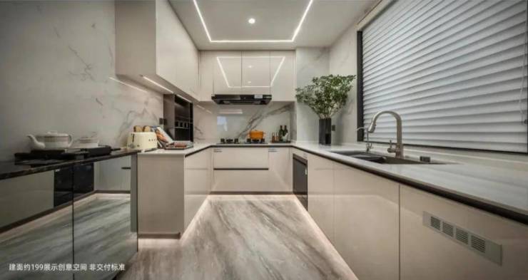 厨房配置天使拉篮、多功能大尺寸水槽、可抽拉龙头,同时带壁龛、手扫感应灯、移动插座、吊顶凉霸等。卫生间设置局部镜面可加热、线型暖风机、吹风机架、牙刷消毒器、口红架等,细节上“卷”出天际,市面上千万级豪宅才有的配置,建发·云湖之城全部配齐。
