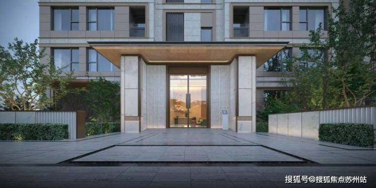 建筑立面选用米白与暖灰的现代轻奢色系,铝板线条+涂料一体板组合使用,简约线条设计,彰显现代典雅美学风格。