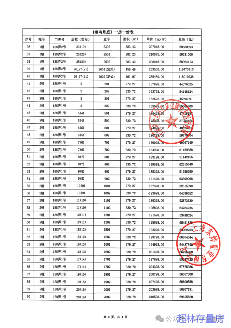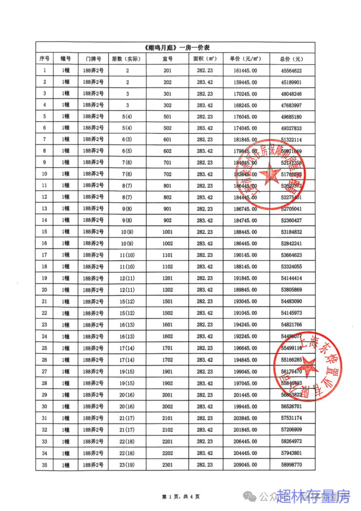 5.一房一价表