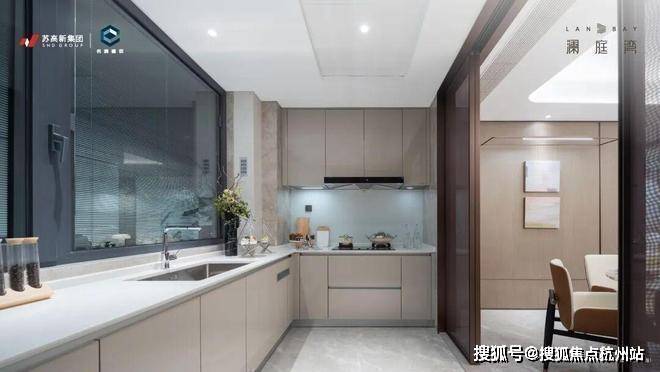 公区功能丰富,让全家人的互动、社交更有质感。U型厨房设计,完美适配约8.3㎡大尺度厨房空间,形成高效烹饪三角,黄金动线让洗-切-炒一气呵成。