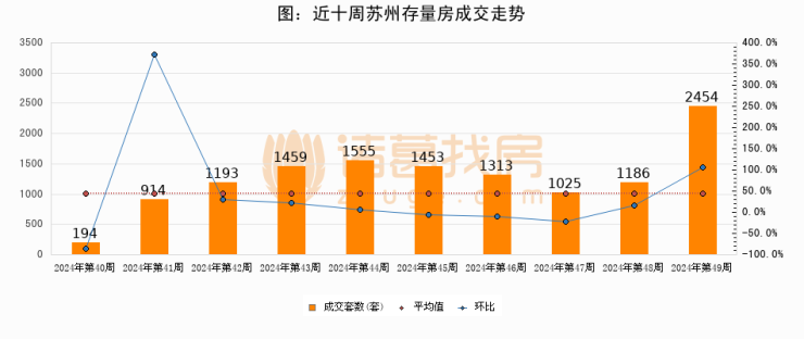 【苏州成交周报】第49周新房成交1151套,二手房2454套,涨价房源647套