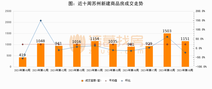 进入2024年第49周(12月02日-12月08日),苏州新建商品房成交1151套,较上周减少352套,环比下降23.4%