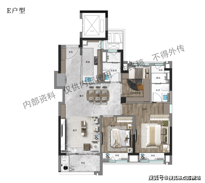 【建筑面积约99㎡E户型 三室两厅两卫】