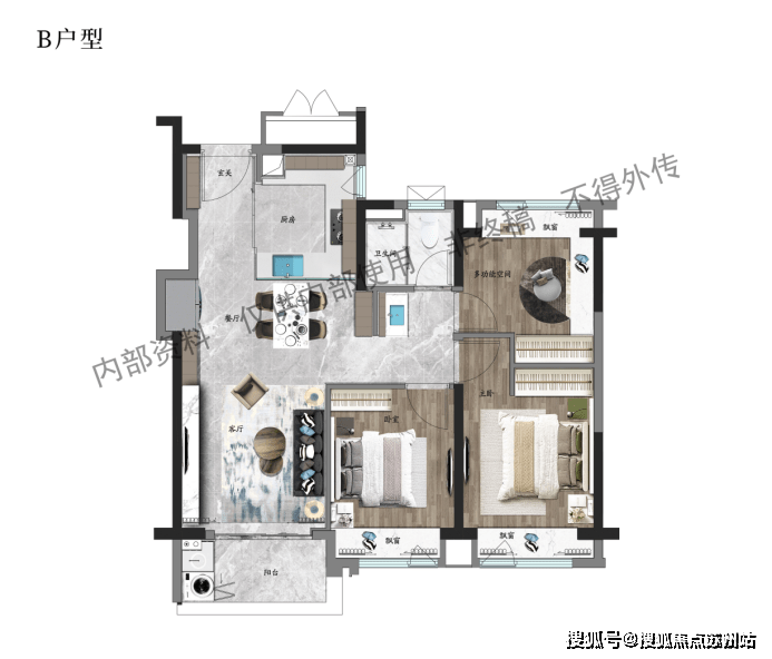 三房格局,足以满足新婚家庭、单孩甚至双孩家庭未来至少10年的居住需求。虽是小户型,但也满足一步到位的功能性需求,关键预计总价600万级即可拿下!