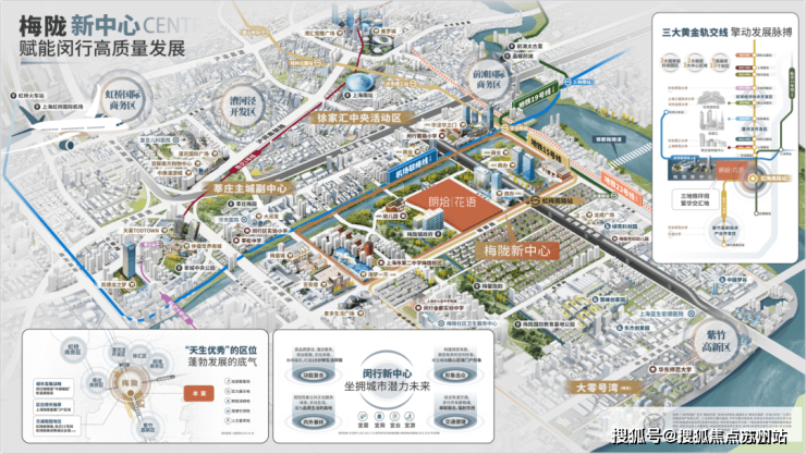 【中国铁建&万科·朗拾花语】占位梅陇新中心。依据闵行2035年规划,这里将以“上海西南中心”为目标,打造成以科技创新、商业商务为特色的综合性新中心。承接中心城区、虹桥商务区、上海南部科创中心三心辐射与价值赋能!