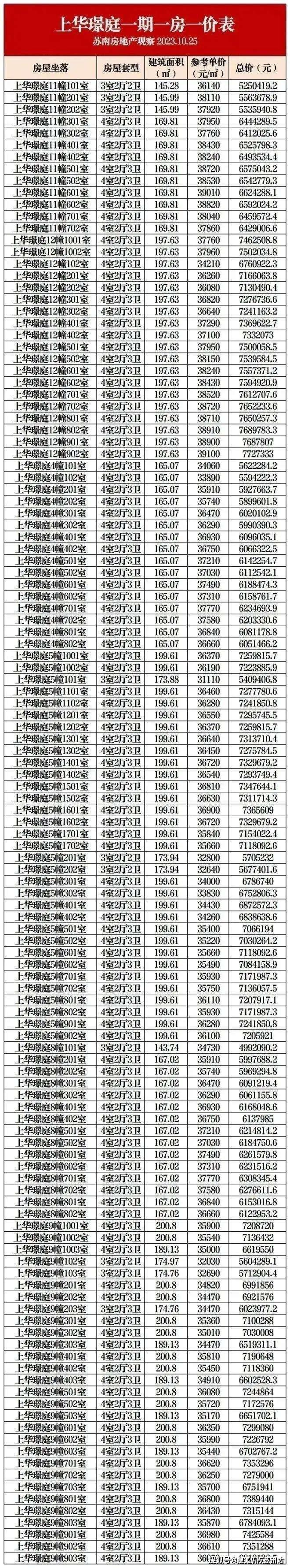 一房一价表如下,建议收藏