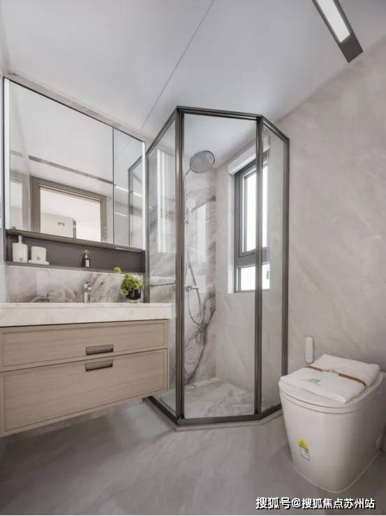主卫配置魔镜,双面高清镜面,内含美妆冰箱的镜柜及卫浴柜,恒温冷藏。