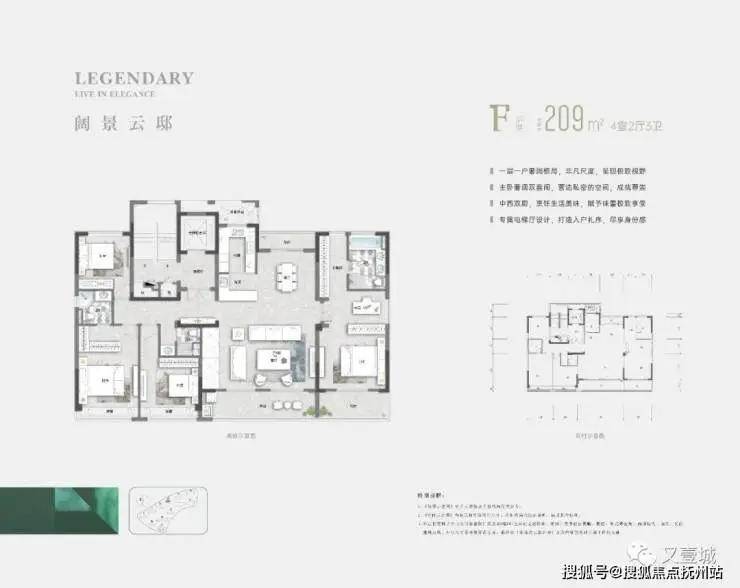 如果说189㎡级的四房,是达到了墅式标准的话,那这款建面约209㎡的整层大平层户型,就是改善的终极款了.