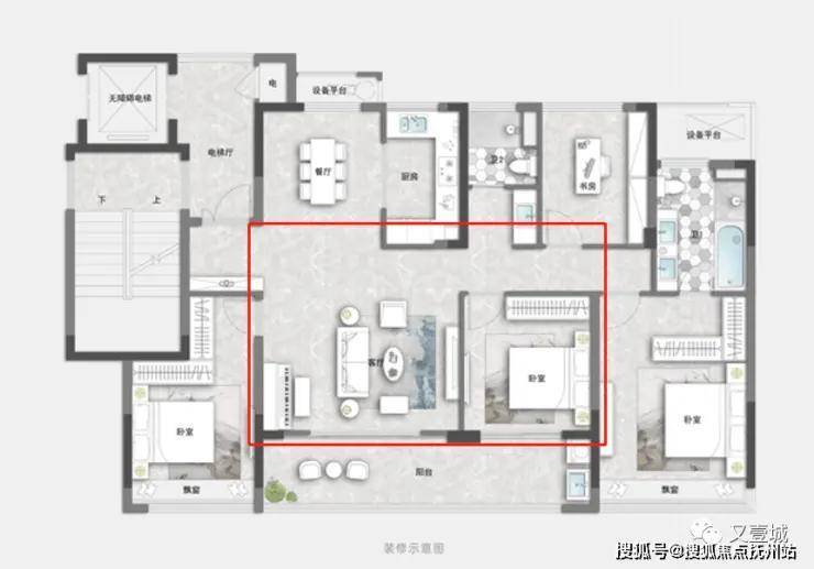 看到这户型的第一时间,想到的就两个字:宽奢.