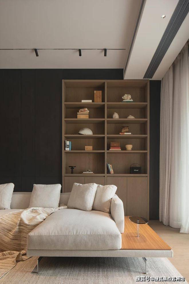 空间内随处可见的留白是设计赋予居住者自由思考的维度,同时也是空间灵动感的源泉,浅色地毯、L型沙发、皮革躺椅让家充盈且实用了起来.