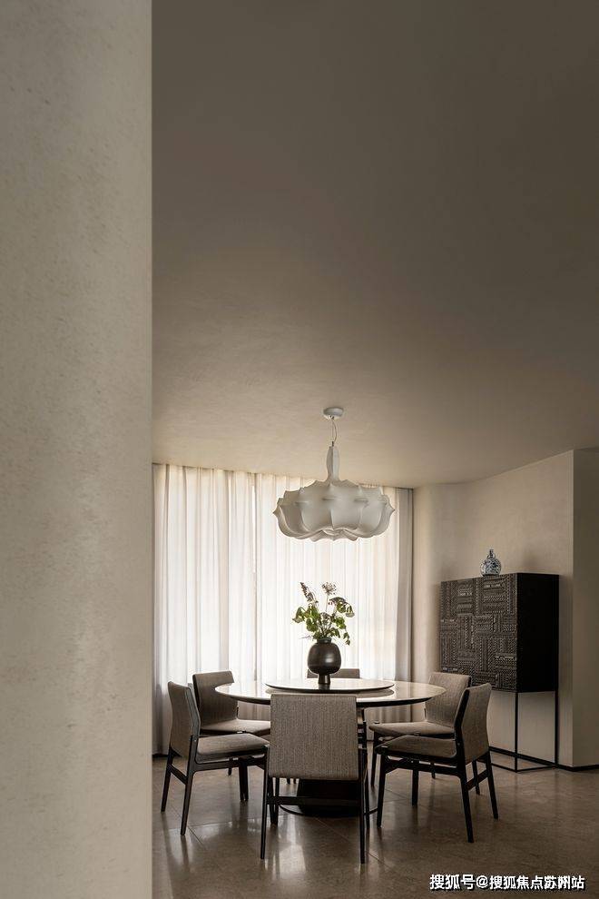 厨房、餐厅、吧台的结合十分轻盈,松弛的生活态度随处可见,厨房位于角落处,让油烟终止在角落,为其他区域带来了更多的舒适感.
