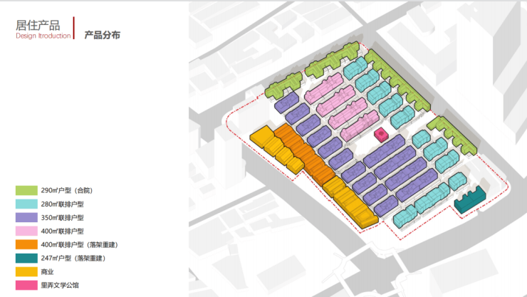 项目总可售面积约4万㎡,包含121套可售低密住宅,产品面积段为245-758㎡,产品涵盖1-3层的里弄住宅,有天有地有院子,房型以3-4房为主,并规划有满足高净值人群社交圈层需求的多功能会所,是市区少有的里弄风貌别墅.