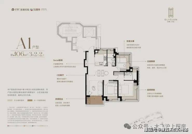 建面约125m²,约1000万起即可上车更舒适的边套四房!