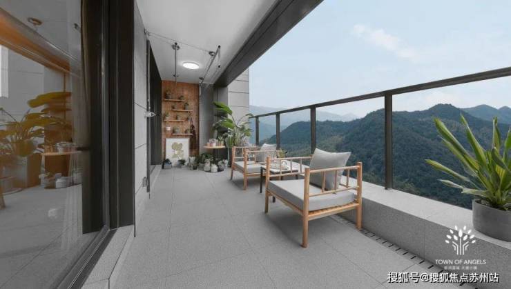 往上走,二层以上的阳台,浅山明月采用了向后退让近2米,这样就出现了最大约20多㎡的“院子”,更多房源变成“摘星洋房”。