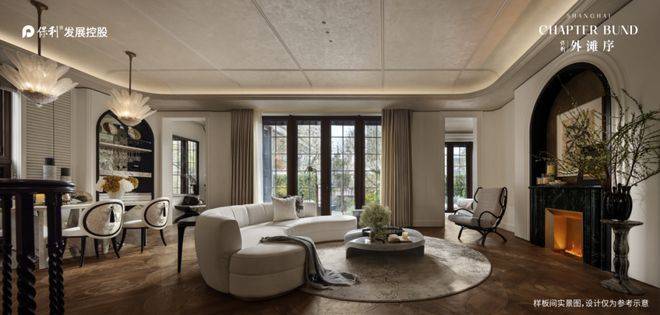 保利·外滩序的稀缺性,不仅在于38席的数量,0.9的低密属性,也在于其产品力的突破性创造,在风貌别墅市场中独一无二。突破传统风貌别墅窄面宽规制,如建面约210㎡别墅,规划四行两列布局,巧妙拓展社区横向尺度,打造整层一体化奢阔厅堂设计,塑造约11.3米面宽,达到了400多平的别墅里面才有的生活享受。