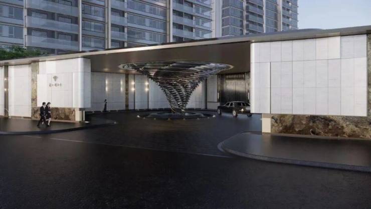整体的归家落客尺度设计复刻了《周礼·考工记》中记录的建筑最高礼遇“面阔九间”的设计,同时,在归家酒店式落客空间,以山茶花元素为源定制了“海派漩心”艺术装置,将文化之美深入建筑的深处.