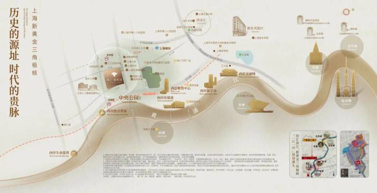 上海沿江而兴,地产开发沿江由北向南辐射发展.