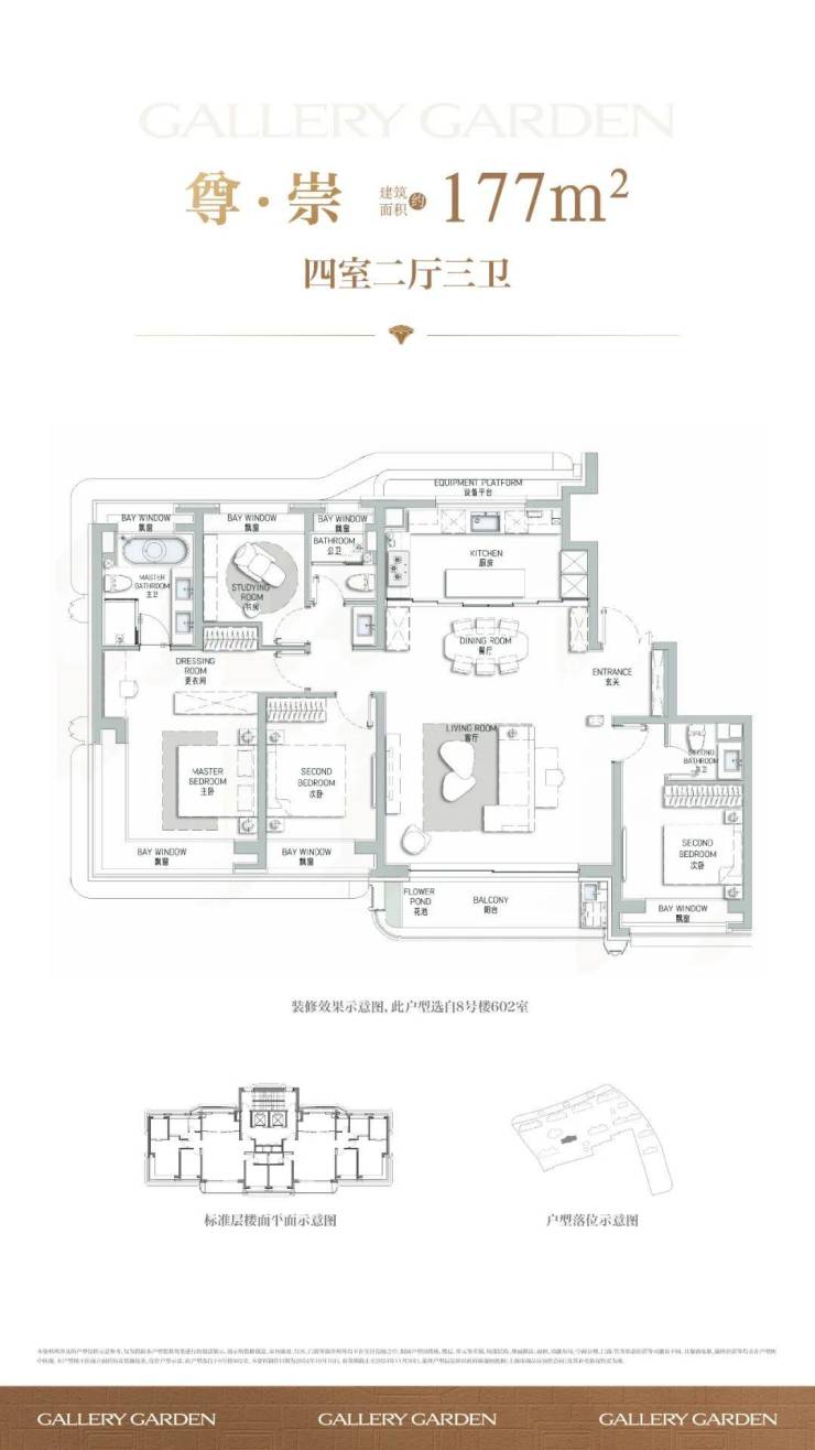 主力户型:建面约112–177㎡的三至四房,涵盖清雅(112㎡)、贵雅(120㎡)、灵感(134㎡)及奢定(177㎡)等多款高得房率户型.