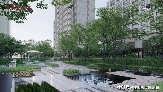 风雨连廊串联中央景观轴,以石材、金属、水景构建起曲径通幽的意境,随处可见的莲花造型,寄托浦发「步步生莲」的祝愿,让业主归家一路美好相随。