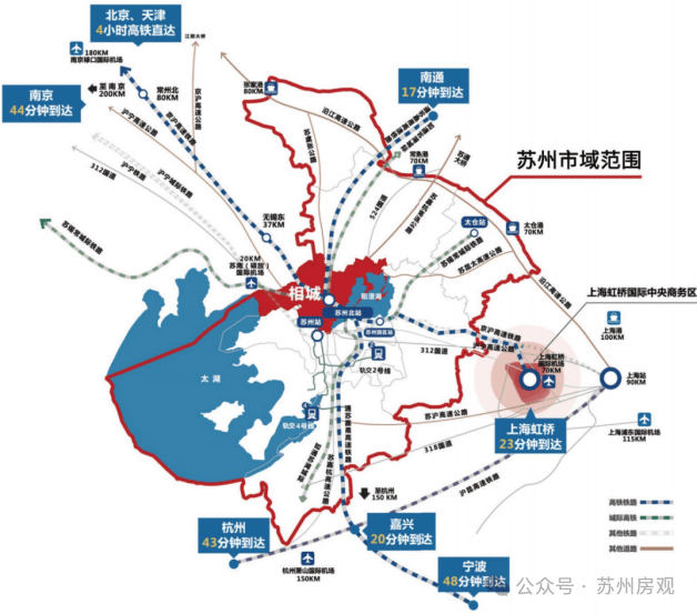 首先从区位来看:项目位处相城、新区、姑苏三区交汇的黄金区位。作为苏州“长三角区域枢纽中心”的相城,正从“价值洼地”向“未来城市中心”蜕变,而元和板块更以“文化中心+高端居住+成熟商业”的定位,成为相城“双核驱动”战略的核心引擎。