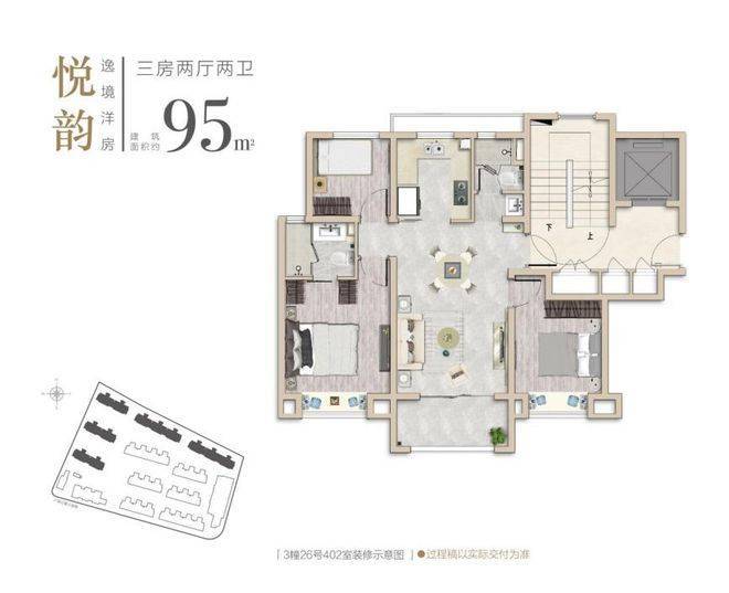 所以,虽然是建面约95㎡的3房2卫户型,但其实际的尺度感、套内使用空间,比一般的建面约100-110㎡高层户型更加宽绰。