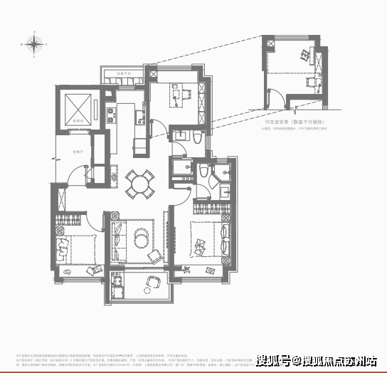套房主卧配置独立卫生间,是致敬主人的尊崇私享。北向灵动X空间既可以作为家里的书房,也可以按照需求随心改造。