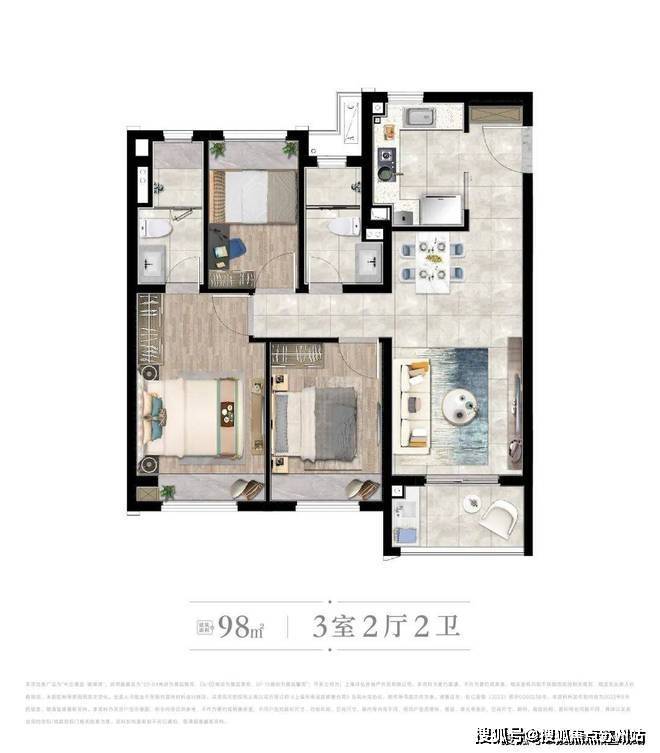[ A户型 ] 建筑面积约98㎡ | 3房2厅2卫