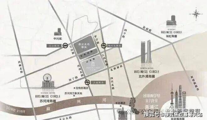 仅从图上看,该地块直线距苏州河约1公里,直线距外滩约1.4公里,直线距北外滩约1.7公里,直线距3/4号线宝山路站约300米,直线距10号线四川北路站约560米,区位优势明显。