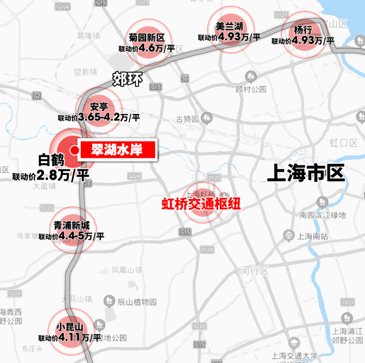 更重要的是,大虹桥的发展带动了整个西部板块的价值提升,从徐泾到赵巷,再到青浦新城,房价一路走高,而白鹤镇作为大虹桥的“后花园”,目前房价仅2.8万/㎡左右,和周边板块相比,存在明显的“价格差”,是真正的“价值洼地”。对于预算有限,但想享受大虹桥红利的家庭来说,翠湖水岸是性价比极高的选择。