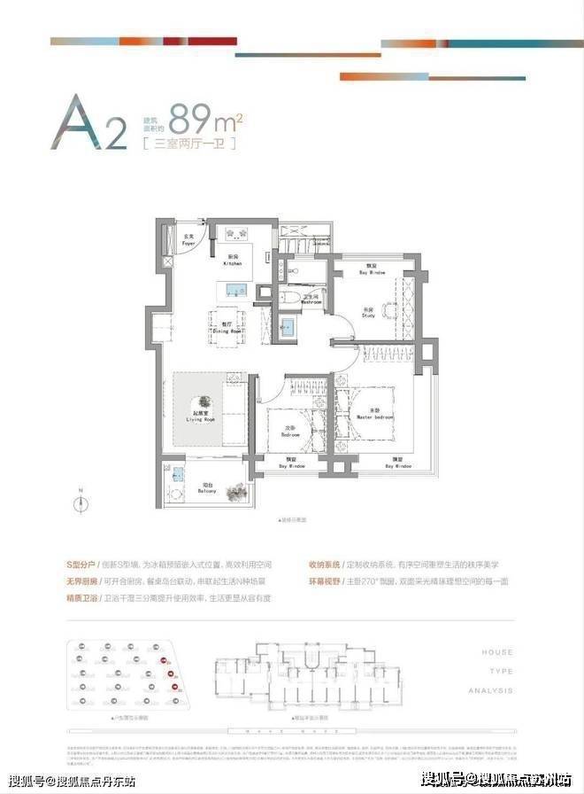 建面约89㎡3房东边套主卧配置约270°双向采光飘窗、S墙设计,主力总价仅约450万级!
