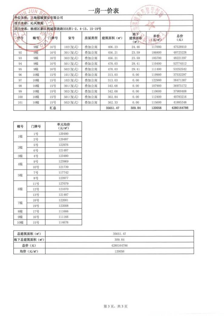 总套数:101套