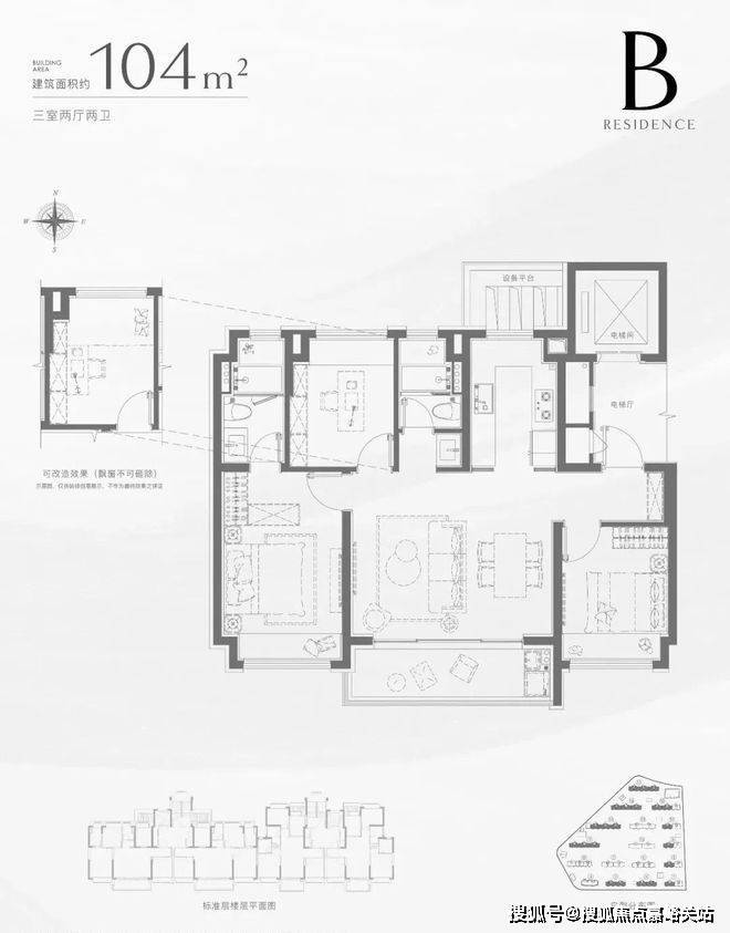 建筑面积约96㎡3房经典飞机户型精致进阶