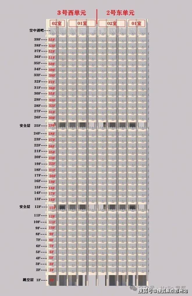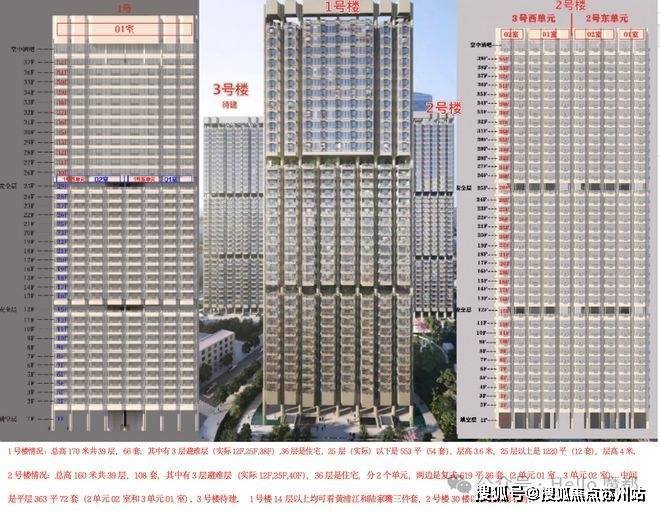 2号楼情况:总高160米共39层,108套,其中有3层避难层(实际12F,25F,40F),36层是住宅,分2个单元,两边是复式619平36套(2单元01室、3单元02室),中间是平层363平72套(2单元02室和3单元01室).3号楼待建.1号楼14层以上均可看黄浦江和陆家嘴三件套,2号楼30楼以上也都能看到.