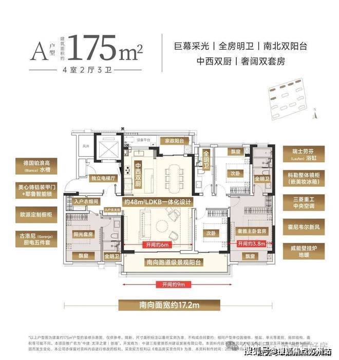 全明卫浴,全南北双阳台,全中西双厨,全系宽厅,全五开间朝南