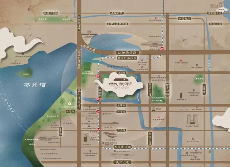 【家在什么位置?】 绿城桃源里落子在苏州湾万公堤旁,这里是吴江太湖新城的核心宝地。出门就是风景,约1公里内,万公堤、苏州河湾、苏州河环绕,仿佛住在公园里,实现了真正的公园地产。