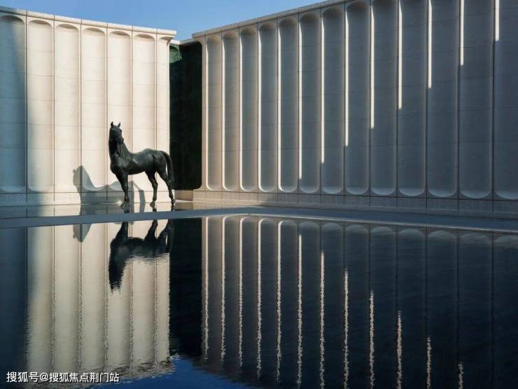 还没进门,就已如同开启了一段欧洲博物馆之旅。首先映入眼帘的是约12米高的意式拱券,建筑上运用了大量斯卡帕叠级美学,这种独特的“斯卡帕叠级”不仅体现在拱门造型之中,还藏在每一层挑檐上,仿石铝板叠加出整整九层折面,精妙雕琢出宛如运河涟漪般的水波纹路。