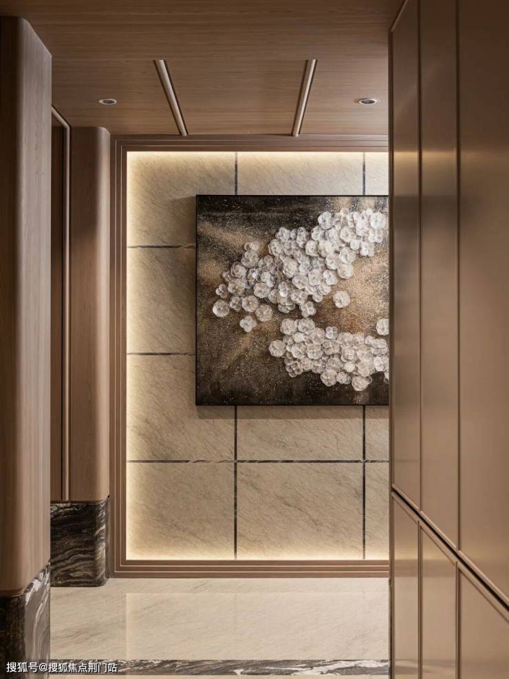玄关处精心设计的收纳系统可轻松容纳百双鞋子,解决了高端客群的实际痛点。
