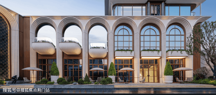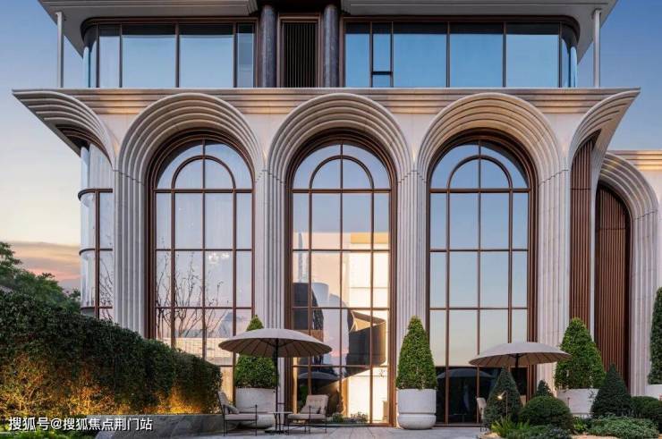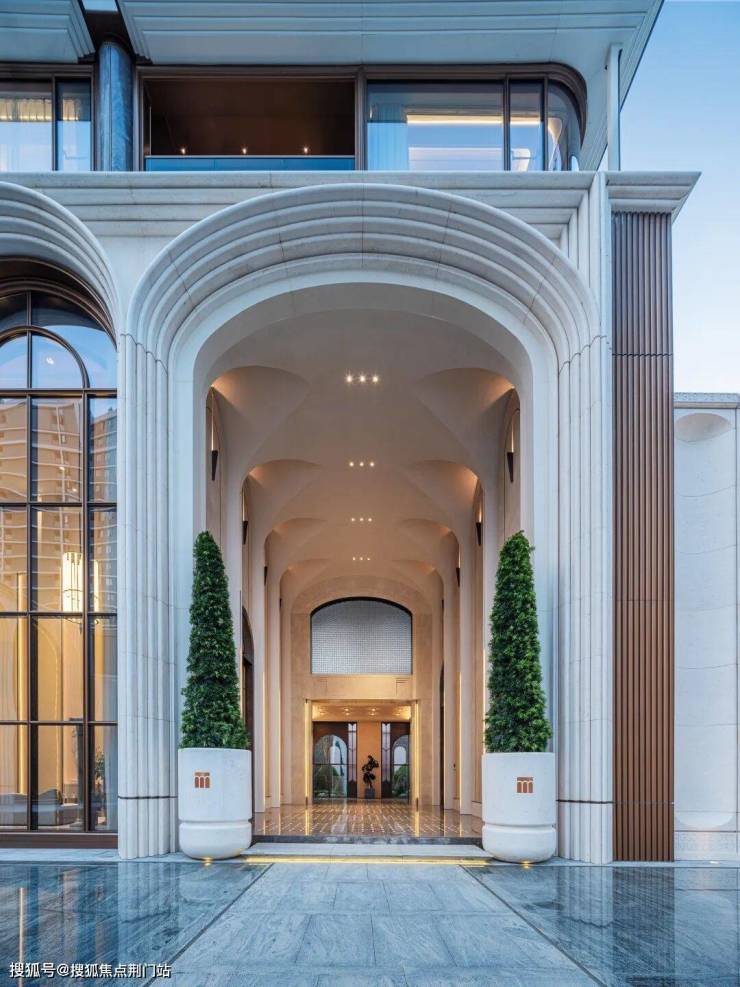 咏印明庐用自己的实践重新定义了下一个十年豪宅应有的样子:贝金米黄石材雕琢的意式拱券,搭配古铜色金属线条和大面玻璃,远看是运河畔一部恢弘的秩序史诗,近观则展现出东西方美学精髓的完美融合。