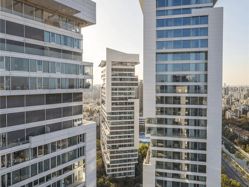 森林宽度达到130米,1公里长,体量足有4个半淮海公园大小,整个绿化率达到100%.整个社区都是绿色森林,树海环抱,连底层都挑空6~9米,种植绿色,让每户人家都能“开窗见树”,让房子生长在森林之上.